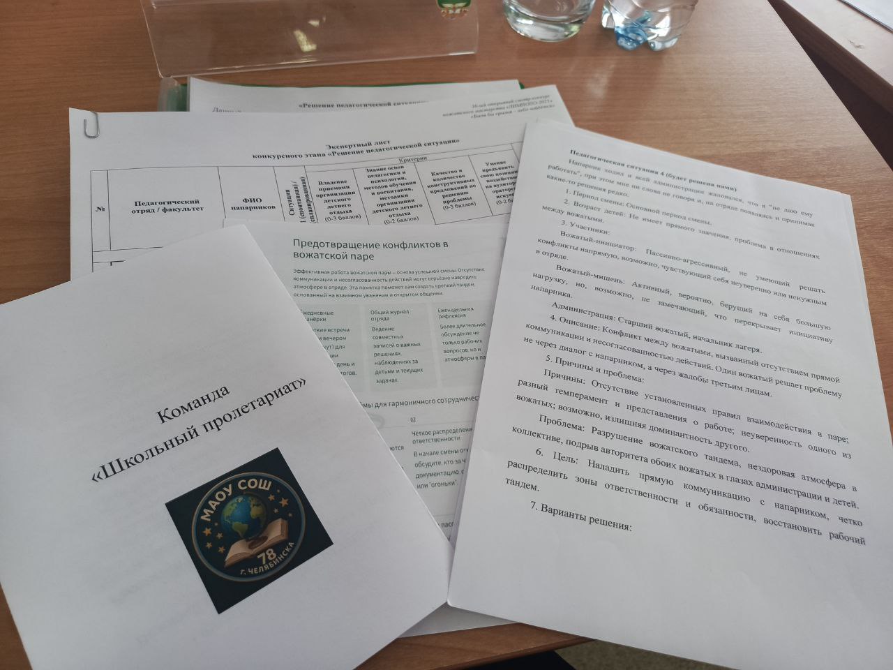 «ТОП.Коллекция» МАУДО «Центр «Креатив»«Команда мечты» МАОУ «СОШ № 25 г. Челябинска»«Шанс» МАОУ «Гимназия № 26 г. Челябинска»«Гречка» МБОУ «Лицей № 88 г. Челябинска»«Школьный пролетариат» МАОУ «СОШ № 78 г. Челябинска»   2 октября на базе педагогического университета прошло второе конкурсное испытание «Решение педагогической ситуации». Представители команд презентовали ситуацию из своего опыта, предложили варианты решений и представили памятку для будущих вожатых для предотвращения данных ситуаций, а также решили ситуацию «здесь и сейчас».   Наши вожатые - самые лучшие! Желаем успехов в дальнейших испытаниях и следим за их результатами!